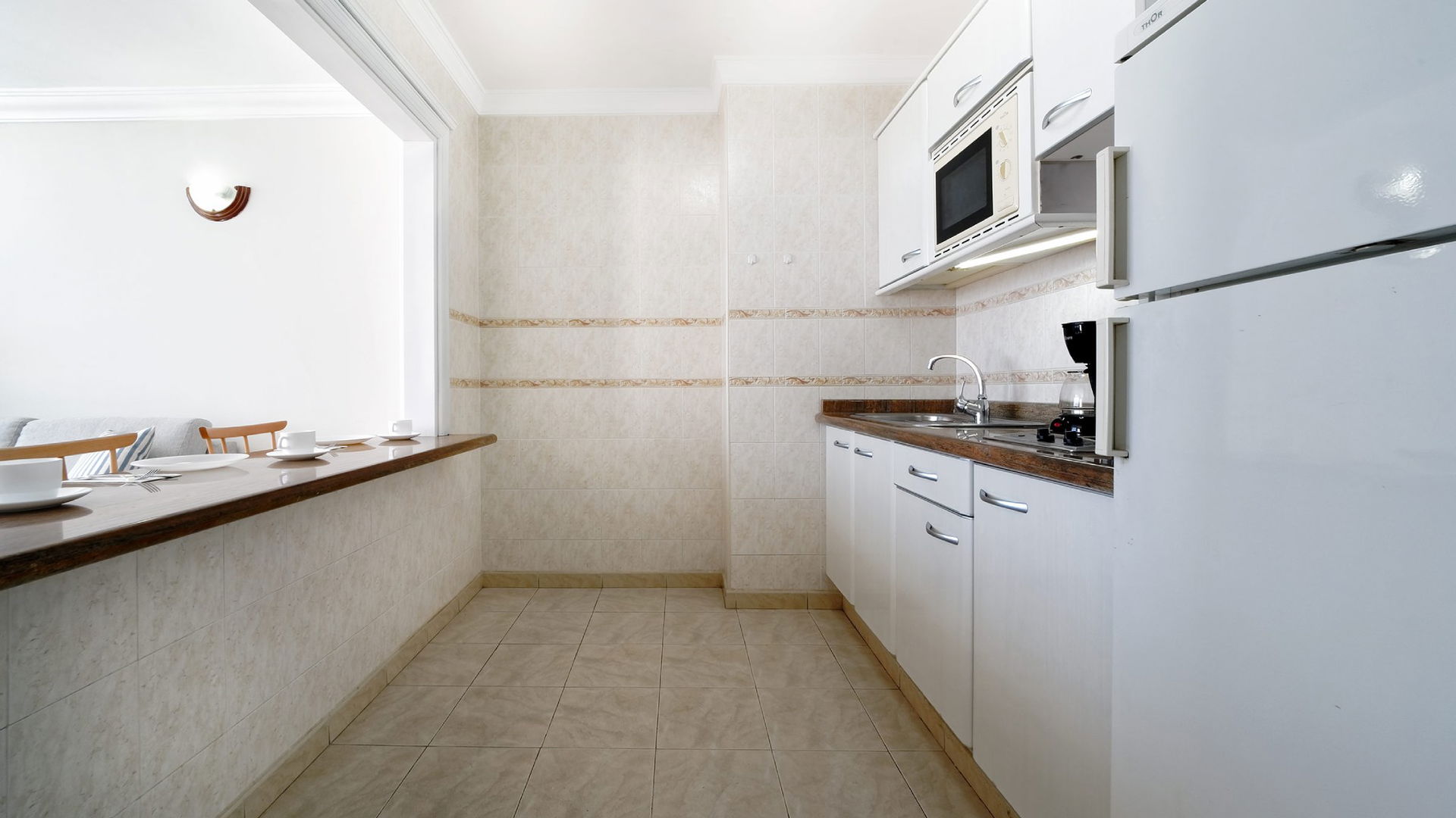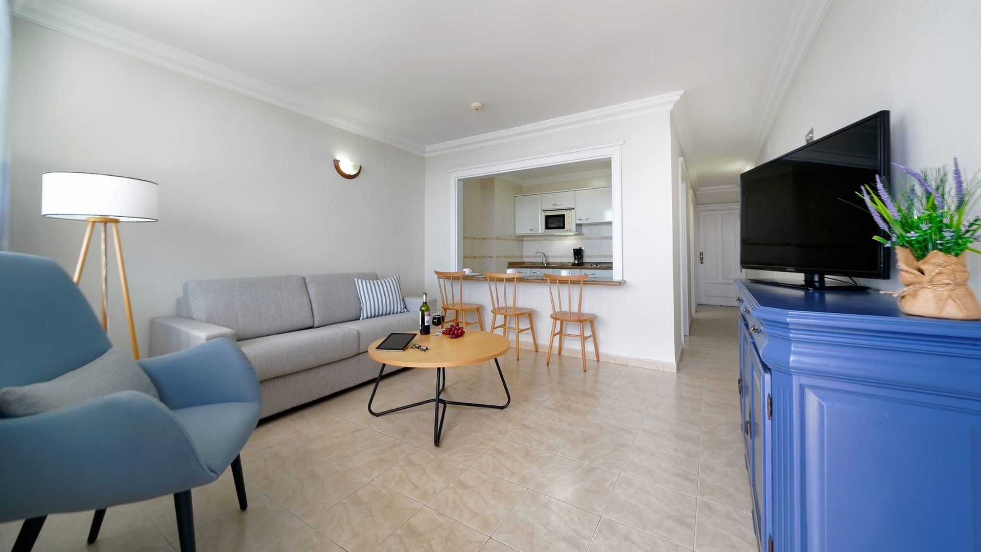 The Two Bedroom Apartment features a private balcony, bathroom with shower and hair dryer, and comes equipped with fridge, tea and coffee making facilities, LCD TV (national and international satellite), air conditioning and safety deposit box. A well equipped kitchenette and living room with a sofa make it the ideal accommodation for a memorable self-catering vacation.